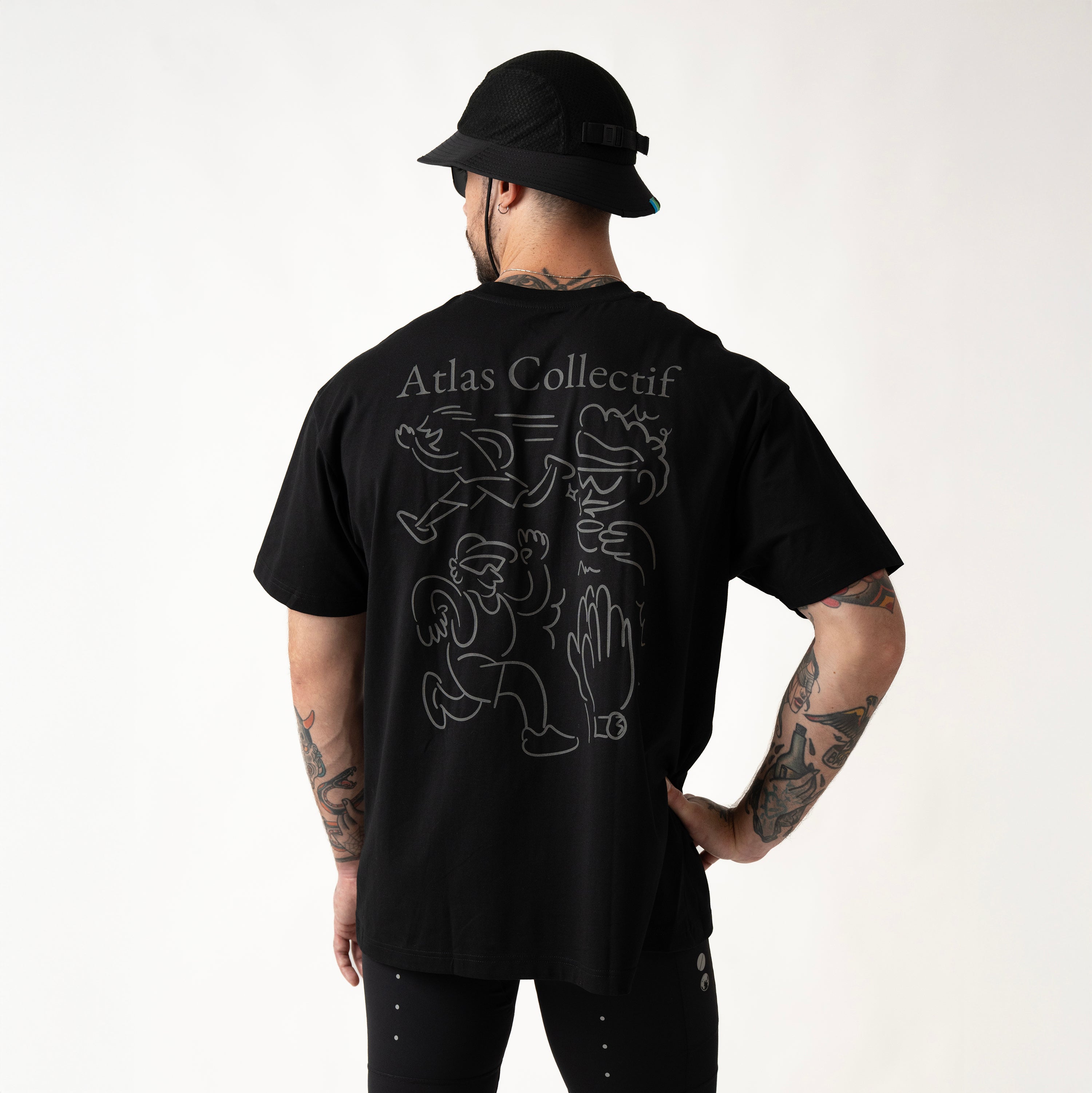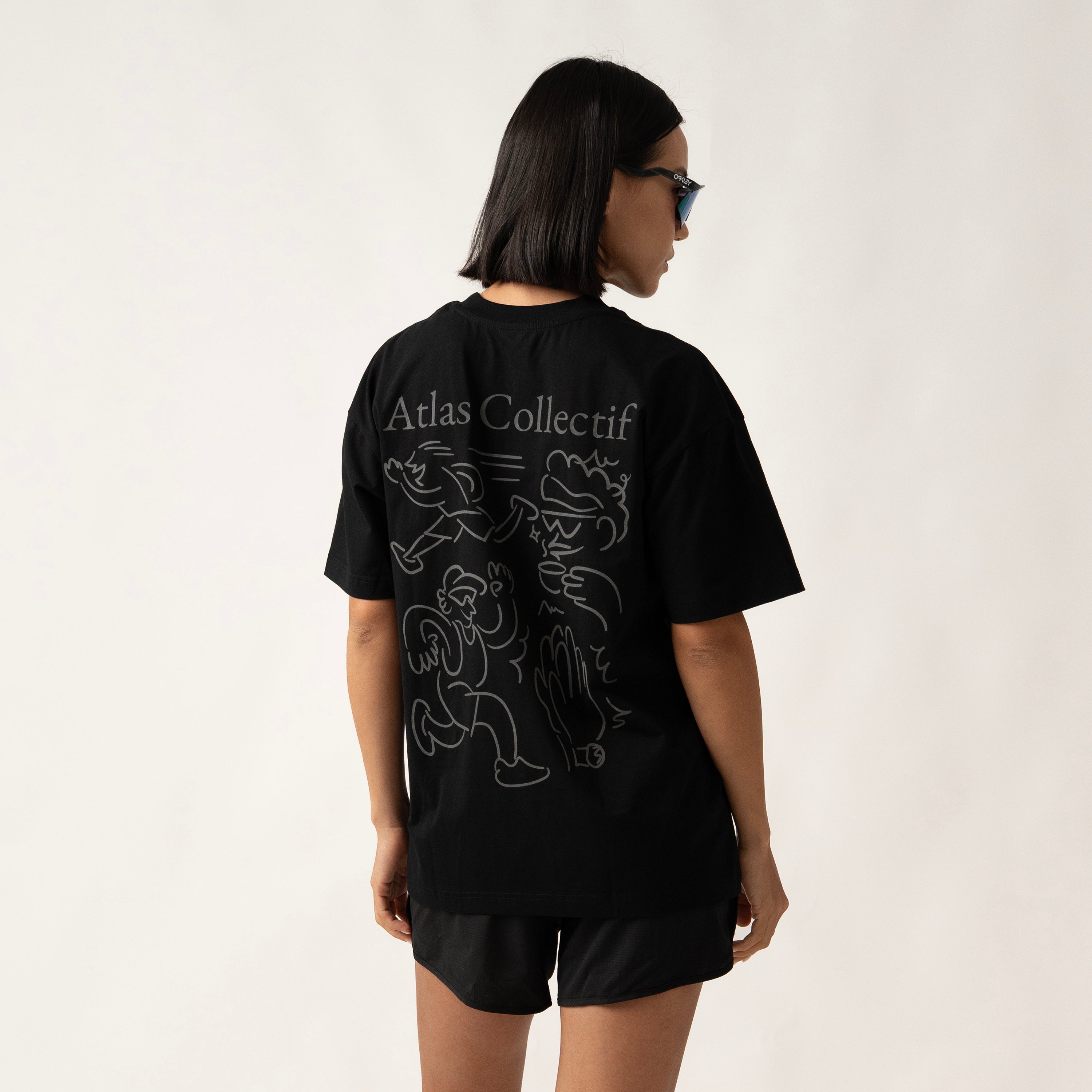 This tee features an abstract illustration capturing the spirit of Atlas Collectif — morning miles, post-run coffee, and the shared rhythm of our running community.