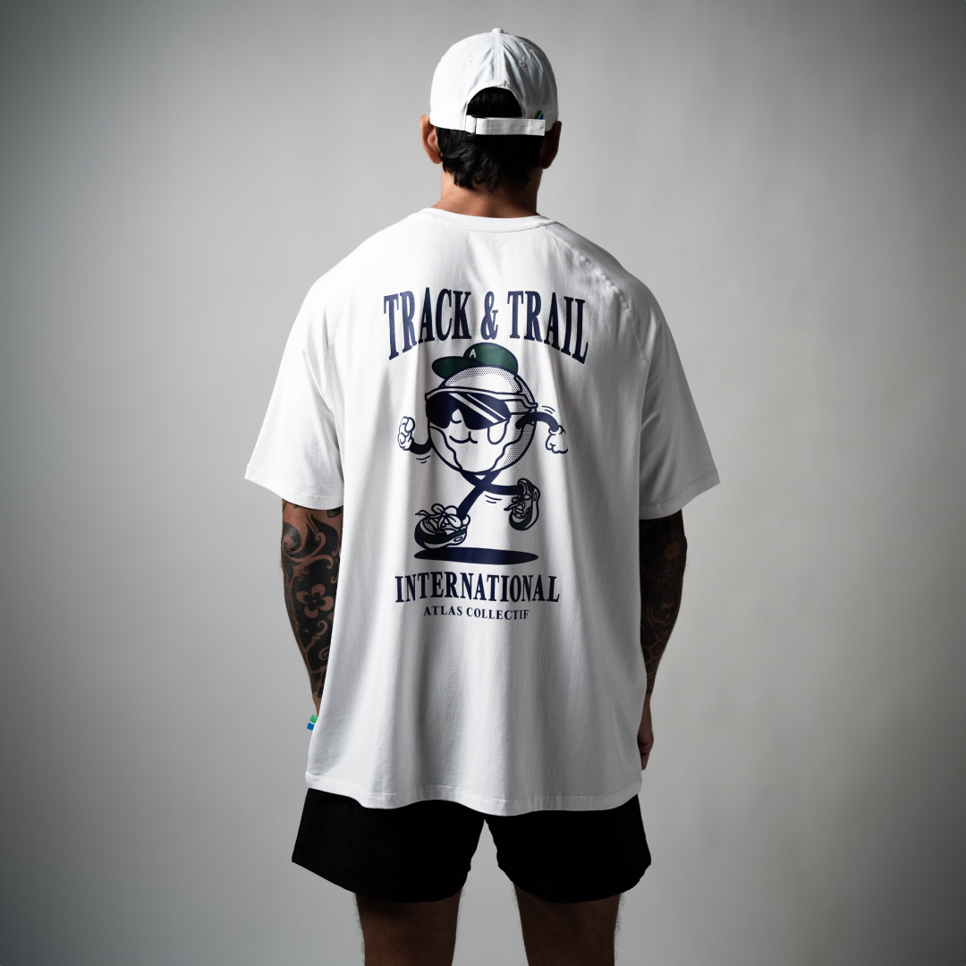 The Track and Trail International Tee, exclusively released at Sneakerlah '23. These limited-edition raglan tees are crafted from 65% bamboo, ensuring maximum softness, ultimate temperature control, breathability, and comfort. Ideal for pre- and post-workouts or simply relaxing!